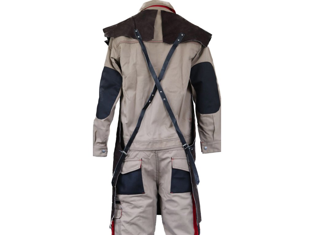 tato kožená zástěra má být používána přes ochranný oděv splňující EN ISO 11611:2015, třídy 1.